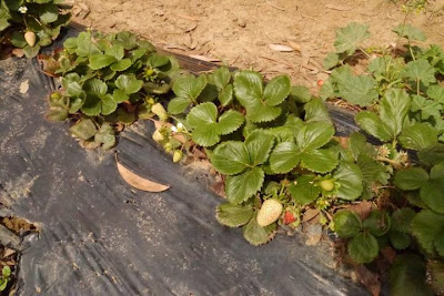 While we were picking strawberries, Karen and I decided to take each other's photos and the guy in grey in the photo above kept on photo bombing us somehow. Many times he bent too low sticking his butt high up making us giggled like mad hatters. We couldn't take any decent photo! Sigh... we had to move a bit further down to take a nice photo with no butts :P